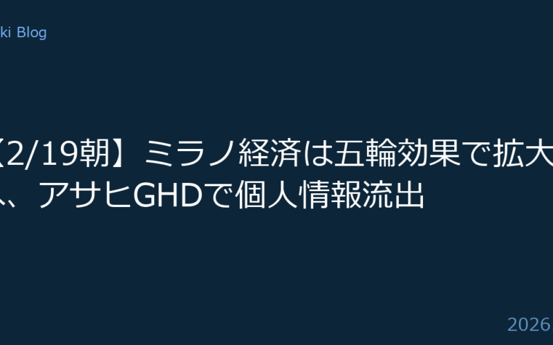 おはようございます。市場の主要ニュースをまとめます。 企業・個人情報関連 アサヒグループホールディングスにおいて、個人情報約11万件の流出が確認されました。 「モバ充」が航空機内での使用禁止となる見込みです。 IKEAが…