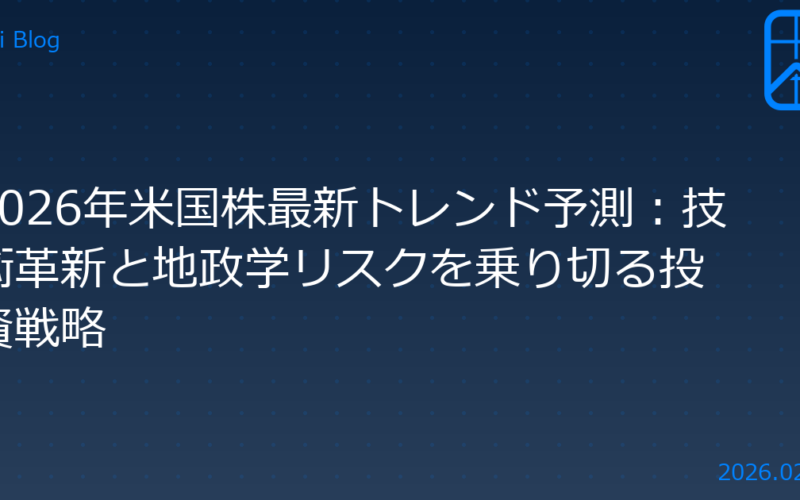2026年米国株最新トレンド予測:技術革新と地政学リスクを乗り切る投資戦略 By Nakki | 2024年XX月XX日 はじめに:2026年の米国株式市場を読み解く 「2026年の米国株は、一体どうなるのだろうか?」 …