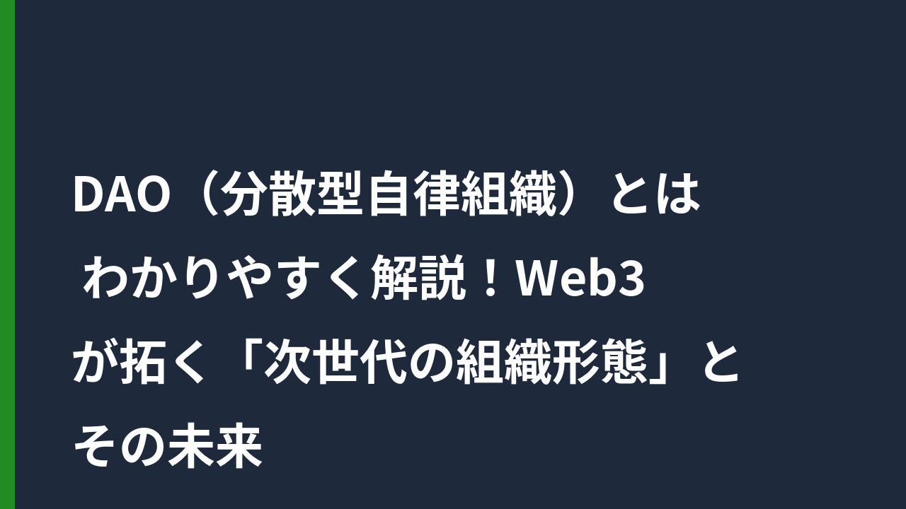 DAO(分散型自律組織)とは わかりやすく解説!Web3が拓く「次世代の組織形態」とその未来