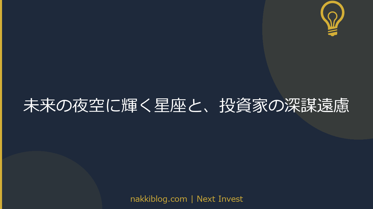 未来の夜空に輝く星座と、投資家の深謀遠慮