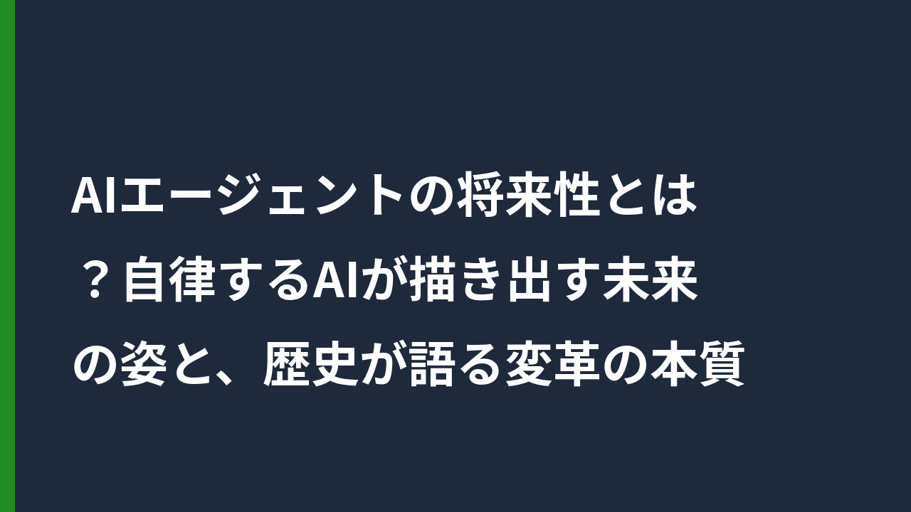 AIエージェントは、私たちの働き方、暮らし方、そして社会のあり方そのものに深い影響を与える、まさに次世代のテクノロジーです。